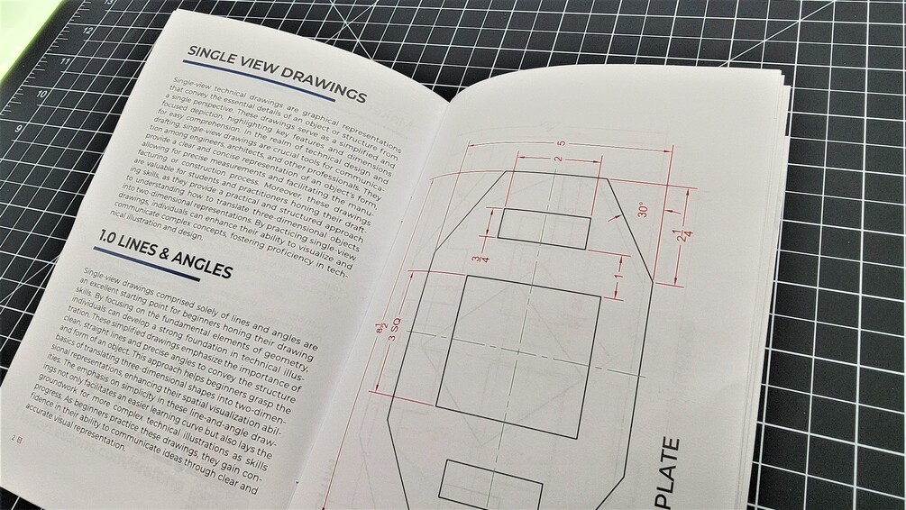 This booklet has 16 Single View Technical Drawings or CAD drawings created using AutoCAD. Each drawing is fully dimensioned and thoughtfully organized into three sections, progressively increasing in difficulty: Lines & Angles, Circles & Arcs, and Intermediate Single Views. Tailored for students just starting to learn how to draft engineer drawings with CAD software or hand drafting.
